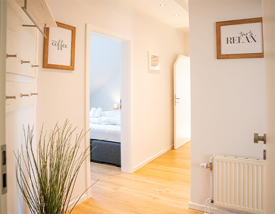 Eine geräumige und elegante Drei-Zimmer-Ferienwohnung im Obergeschoss. Sie besticht durch modernen Stil und eine sorgfältige Auswahl an Einrichtung. Die lichtdurchfluteten Räume schaffen eine angenehme Atmosphäre, die zum Entspannen einlädt.