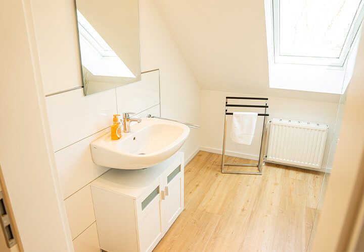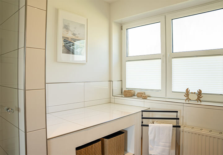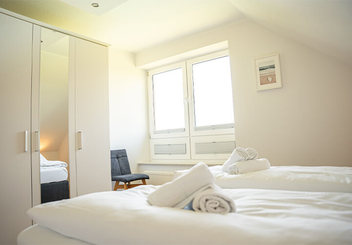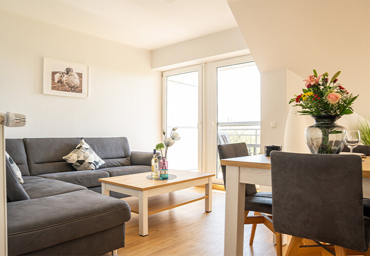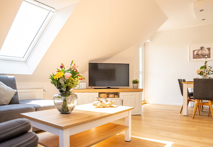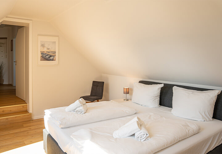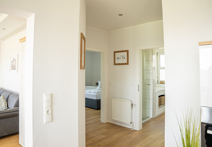 Eine geräumige und elegante Drei-Zimmer-Ferienwohnung im Obergeschoss. Sie besticht durch modernen Stil und eine sorgfältige Auswahl an Einrichtung. Die lichtdurchfluteten Räume schaffen eine angenehme Atmosphäre, die zum Entspannen einlädt.