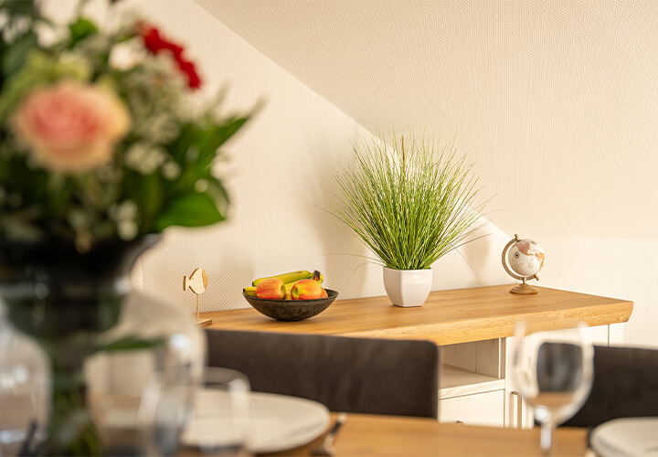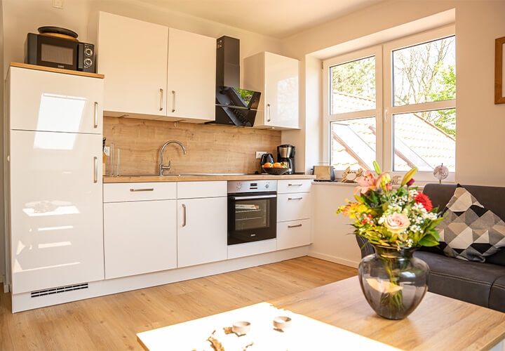 Die offene Küche ist mit hochwertigen Geräten voll ausgestattet, sodass Sie allerlei Leckereien im Kühlschrank unterbringen können. Zudem verfügt die Wohnung über Highspeed WLAN für Ihre digitale Vernetzung.